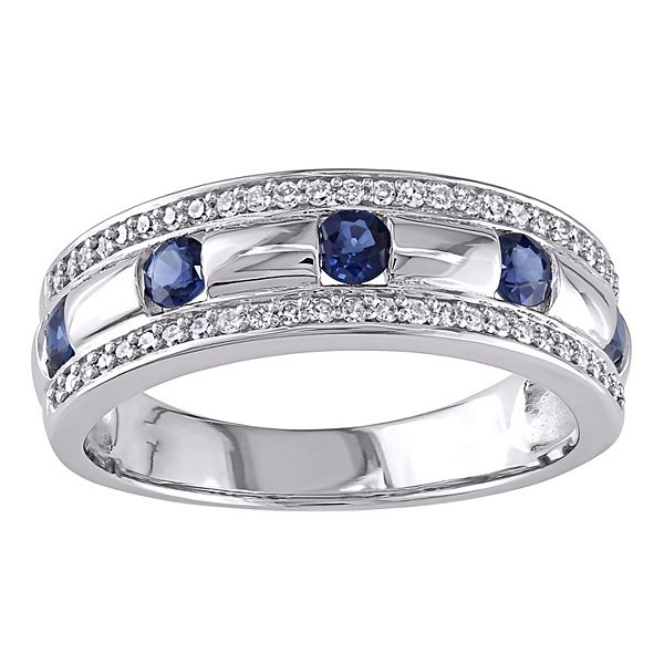 Stella Grace Men S 10k White Gold Sapphire 1 4 Carat T W Diamond Wedding Band